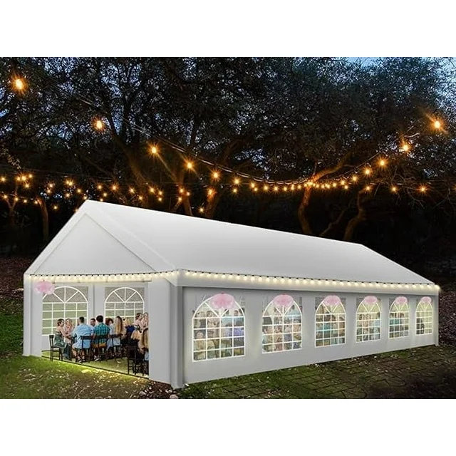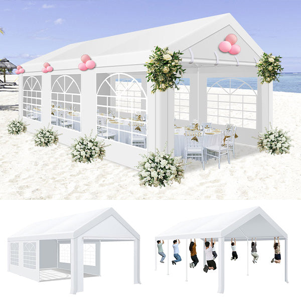 This 20 x 20 FT Heavy duty party tent outdoor canopy is a best choice for your outdoor. Our 20x20 wedding tent has a sturdy design and sturdy columns to increase stability. It is ideal for your patio, greenhouse, party, boats, truck, horse shade, flea market, parking space, nursery, plants, flowers, camping area, garden area, pet, storage, deck, pool, barbeque, dog kennel, lawn and garden equipment, commercial fair, picnics, social events, weddings, parties and storage shelters, outdoor events or construction area.