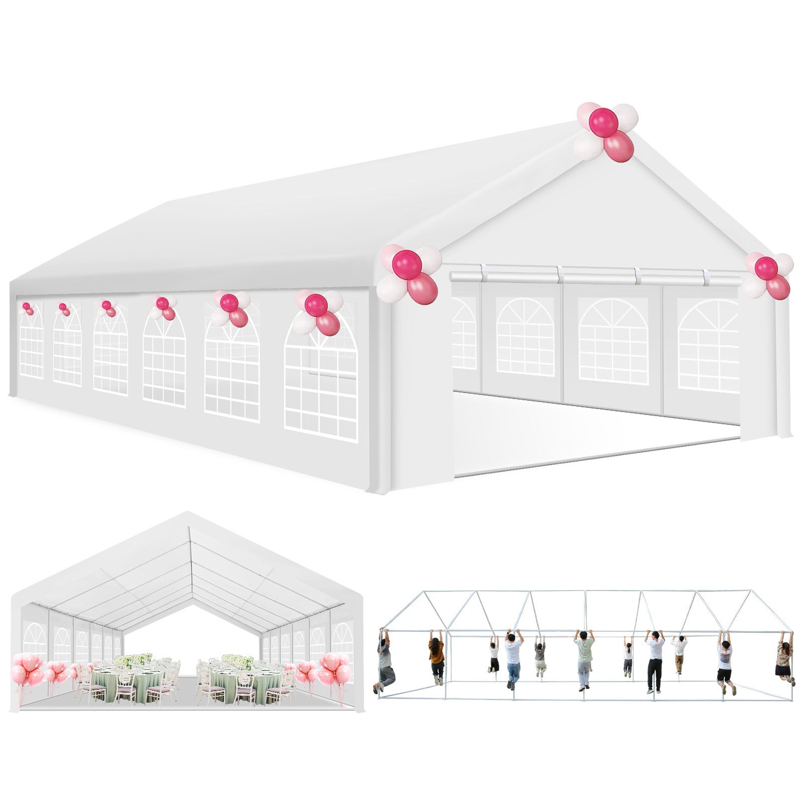 ✨【Removable Sidewalls & Excellent Ventilation】Our wedding tents Comes With 4 removable sidewalls with 6 PVC church windows and 2 zipper doors with windows. The number of the sidewall can be installed freely as needed. Roll-up zipper door and detachable sidewalls for even better ventilation, providing cross ventilation and venting on hot days. Also provides warmth on cold days.