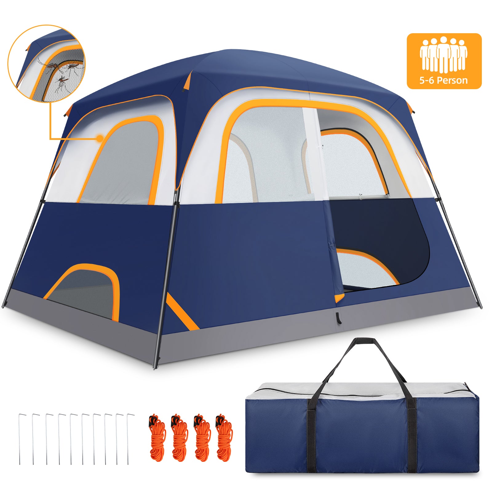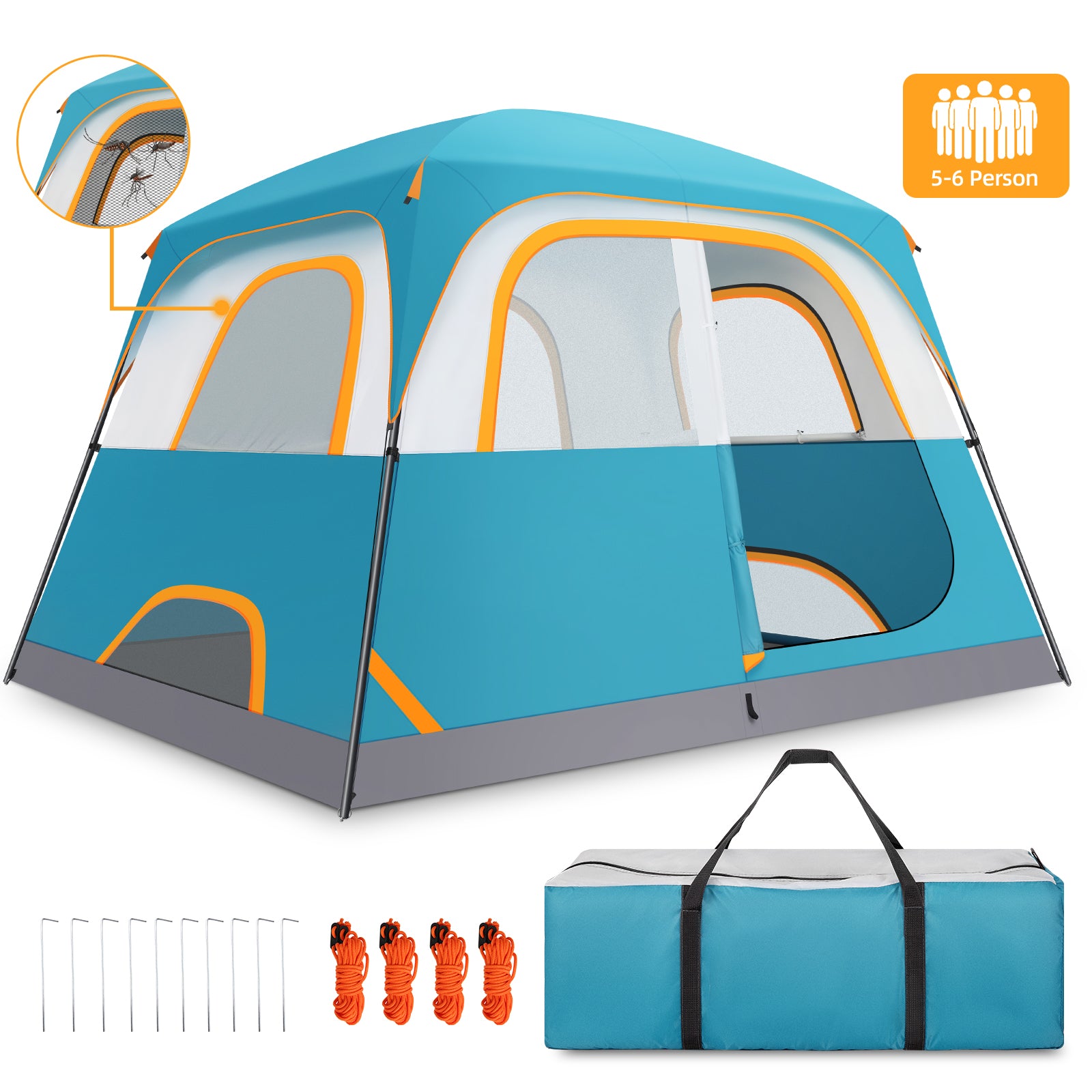 【Quick and Easy Setup】This 6-person tent can be assembled in just 5-8 minutes without any external tools, making it perfect for novice campers and last-minute adventures.