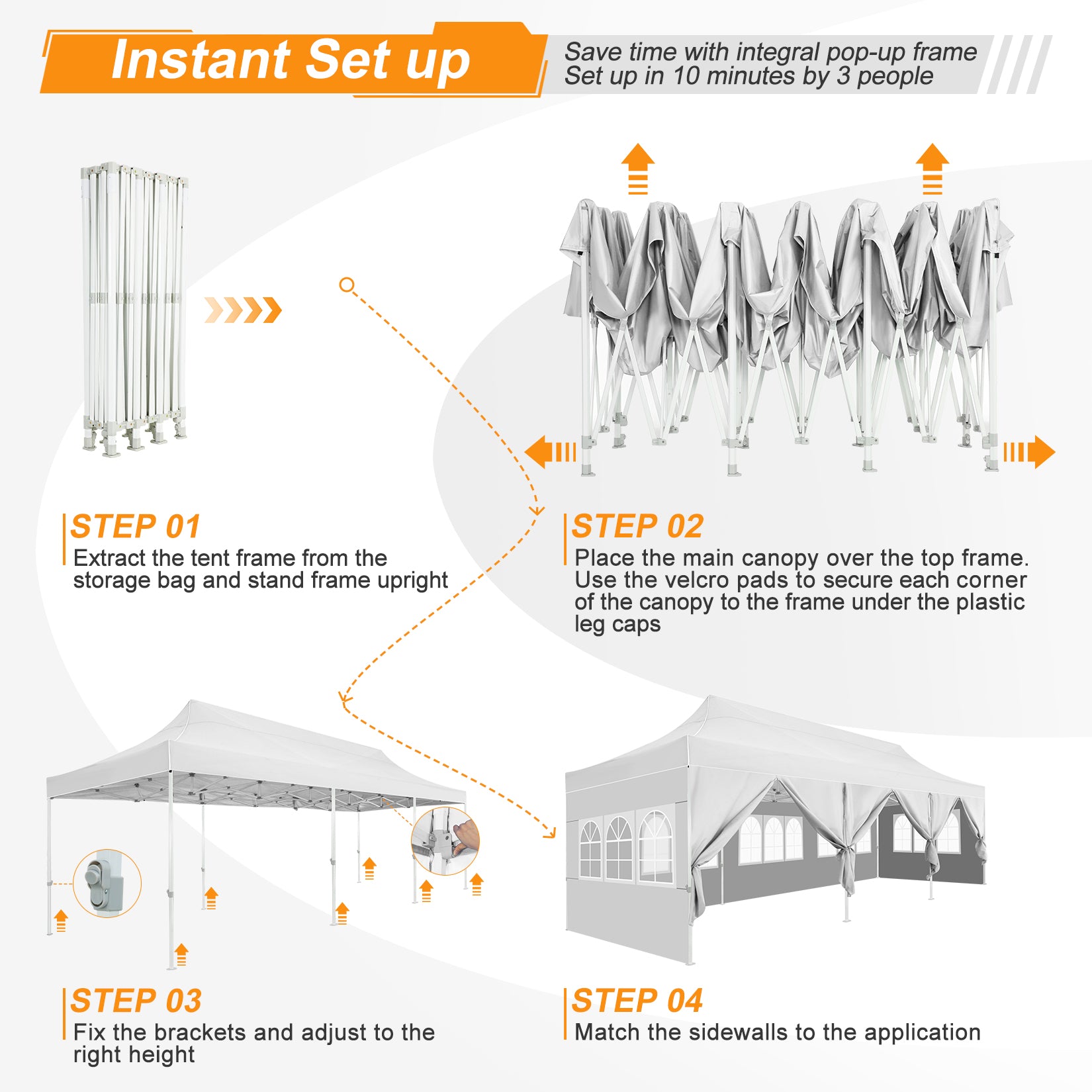 【Suitable Scenarios】 This tent is perfect for weddings, birthday parties, business events, and other large events. This 10x30 ft awning can also be used as a carport.