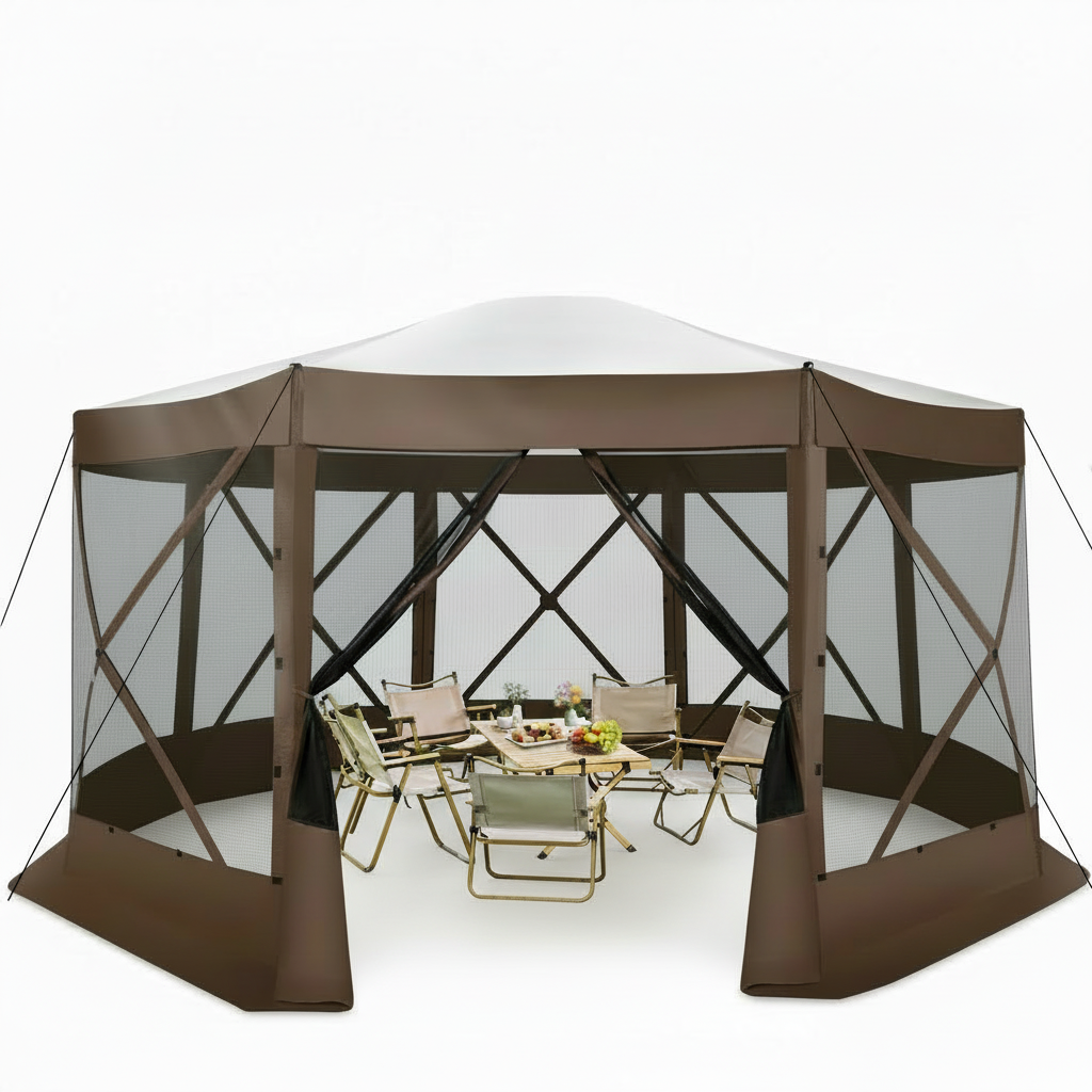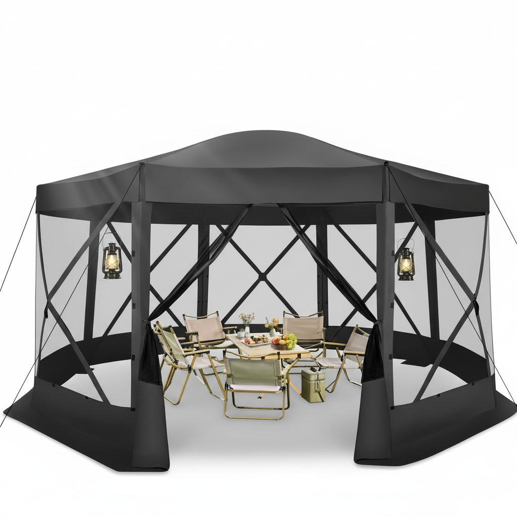HOTEEL 15x15ft Outdoor Pop Up Gazebo for Camping, Screen House with 7 Sidewalls and Mosquito Netting, Waterproof, UV Resistant, Portable Carry Bag, Blue