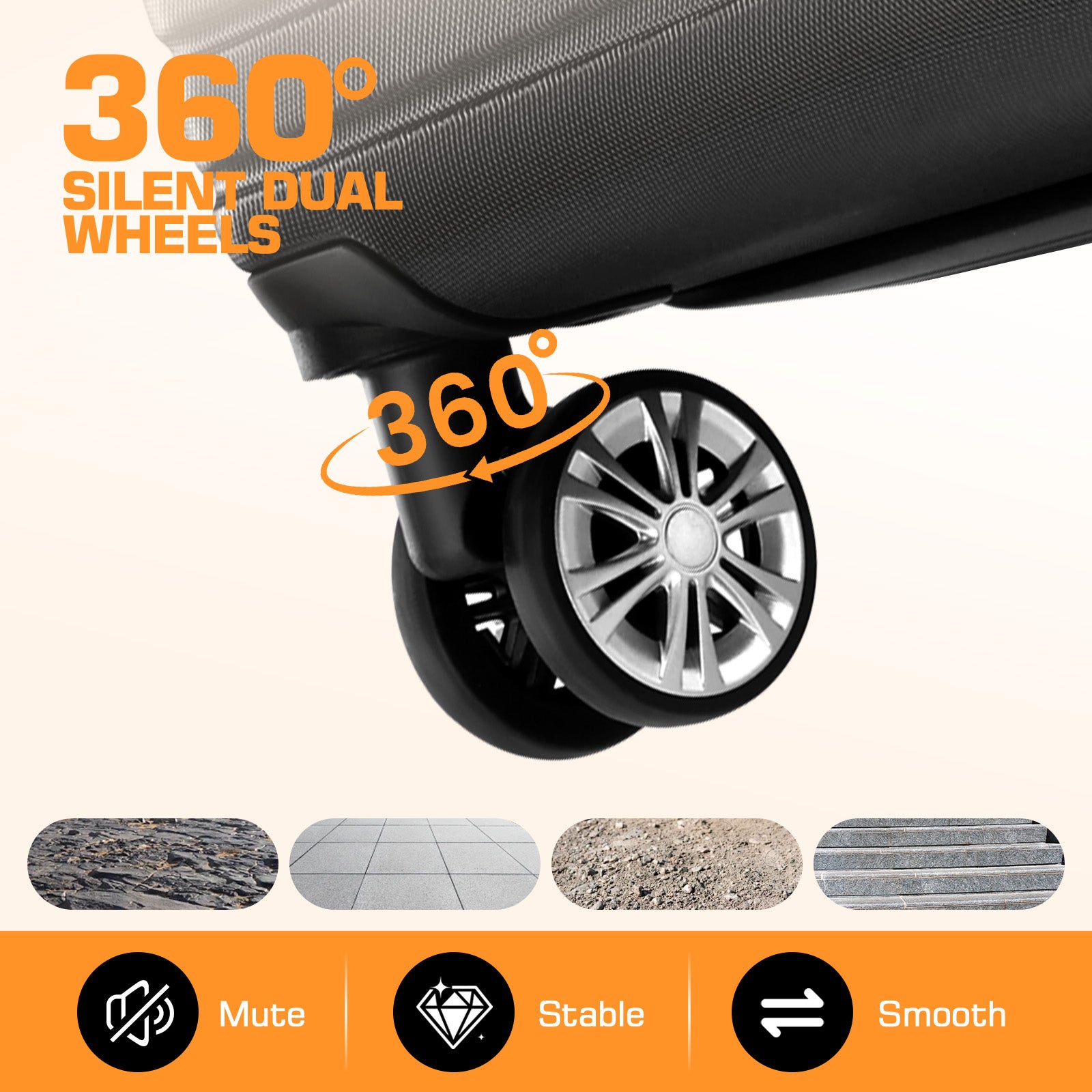 【Smooth Mobility】Features premium 360° spinner wheels for effortless movement and a durable telescopic handle system for comfortable maneuvering through airports and hotels.