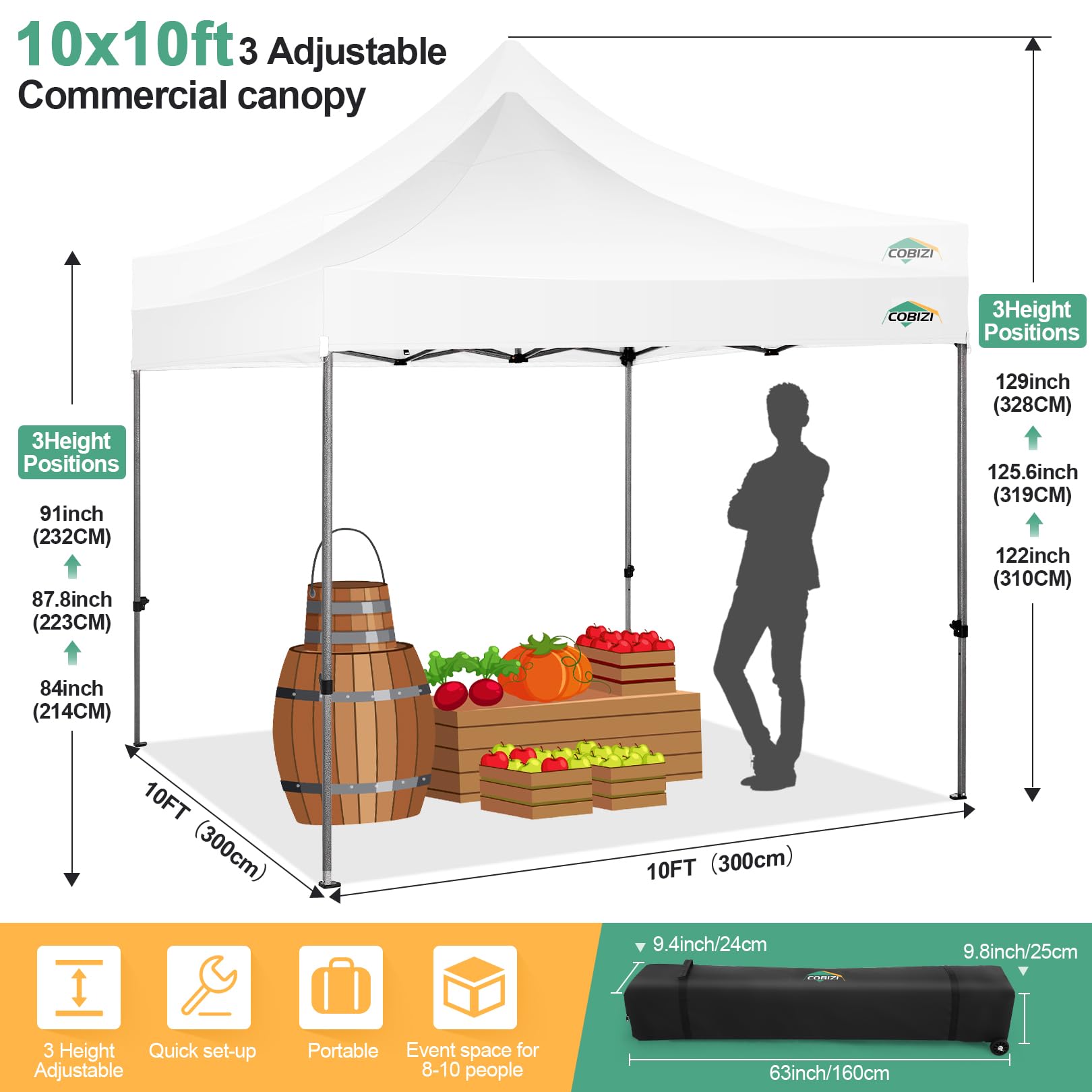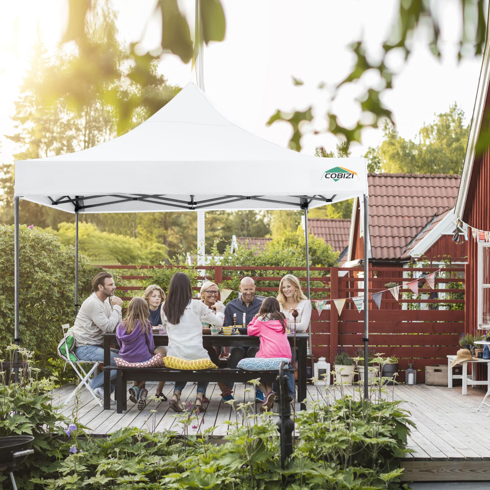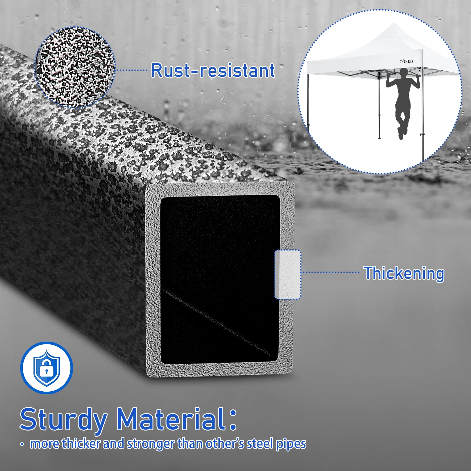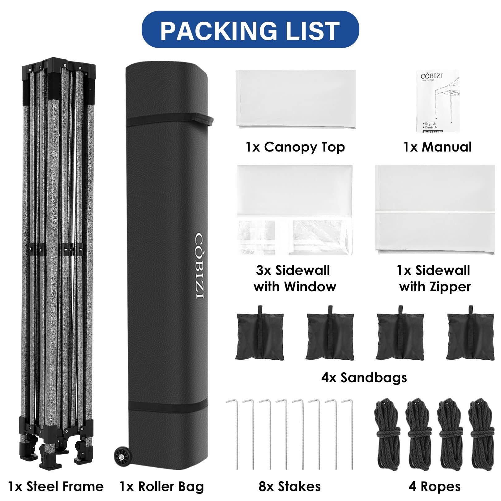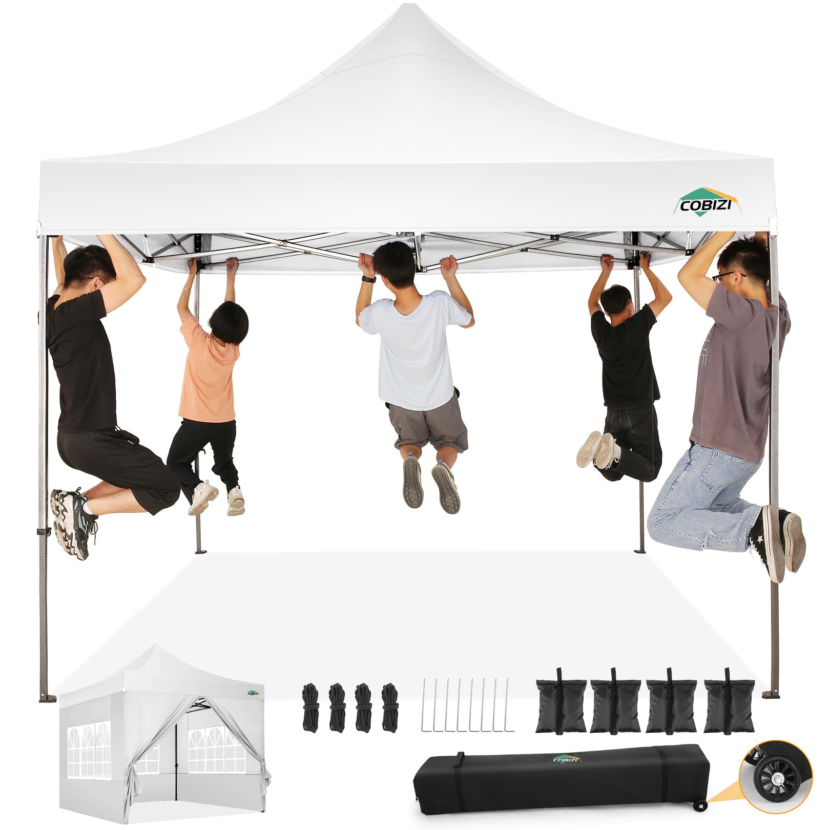 COBIZI 10x10 Pop Up Canopy Tent with 4 sidewalls Commercial Heavy Duty Canopy UPF 50+ All Weather Waterproof Outdoor Canopy Wedding Tents for Parties Gazebo with Roller Bag, White (Windproof Upgraded)