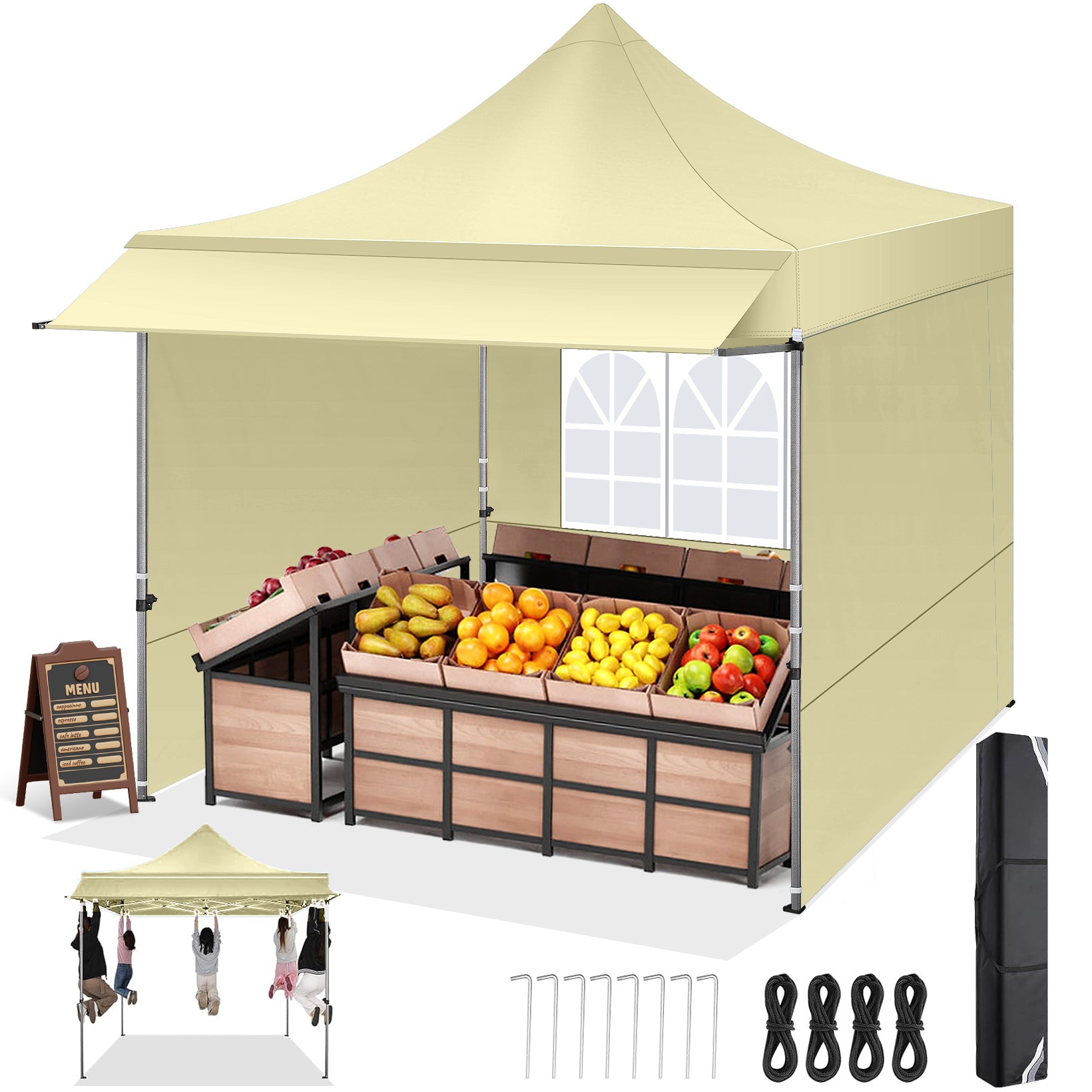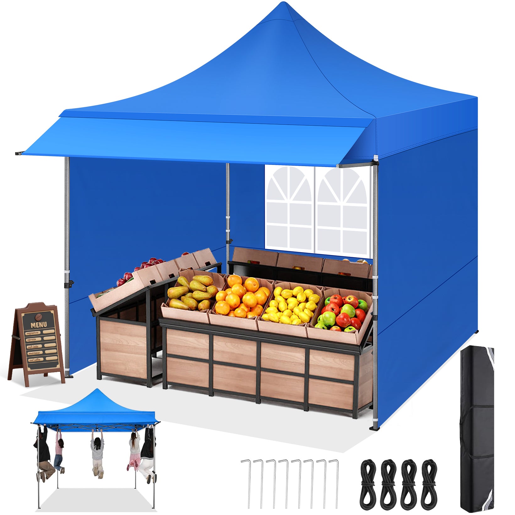 COBIZI 10'x10' Pop Up Canopy Tent with Awning & Sidewalls, Commercial Canopy Tents Instant Waterproof, UPF 50+ Sun Shade for Outdoor, Parties, Markets (White)