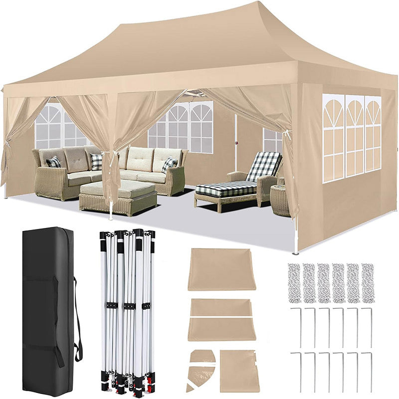 【轻松搭建】: 只需一两个人即可在几分钟内完成搭建。无需任何工具。只需将组装好的框架连同顶篷从袋中取出,拉开,将布料铺在框架上,展开支腿即可。非常适合婚礼和其他大型活动,附带的4个侧面教堂窗和2个拉链侧墙方便进出,视野开阔无阻。每个侧墙都配有魔术贴绑带,方便安装和拆卸。