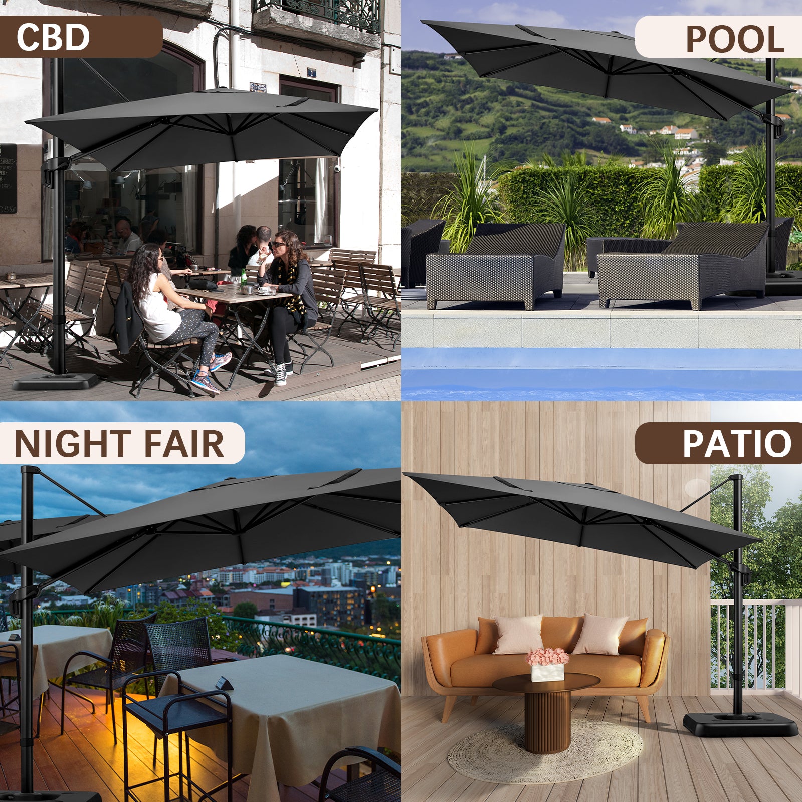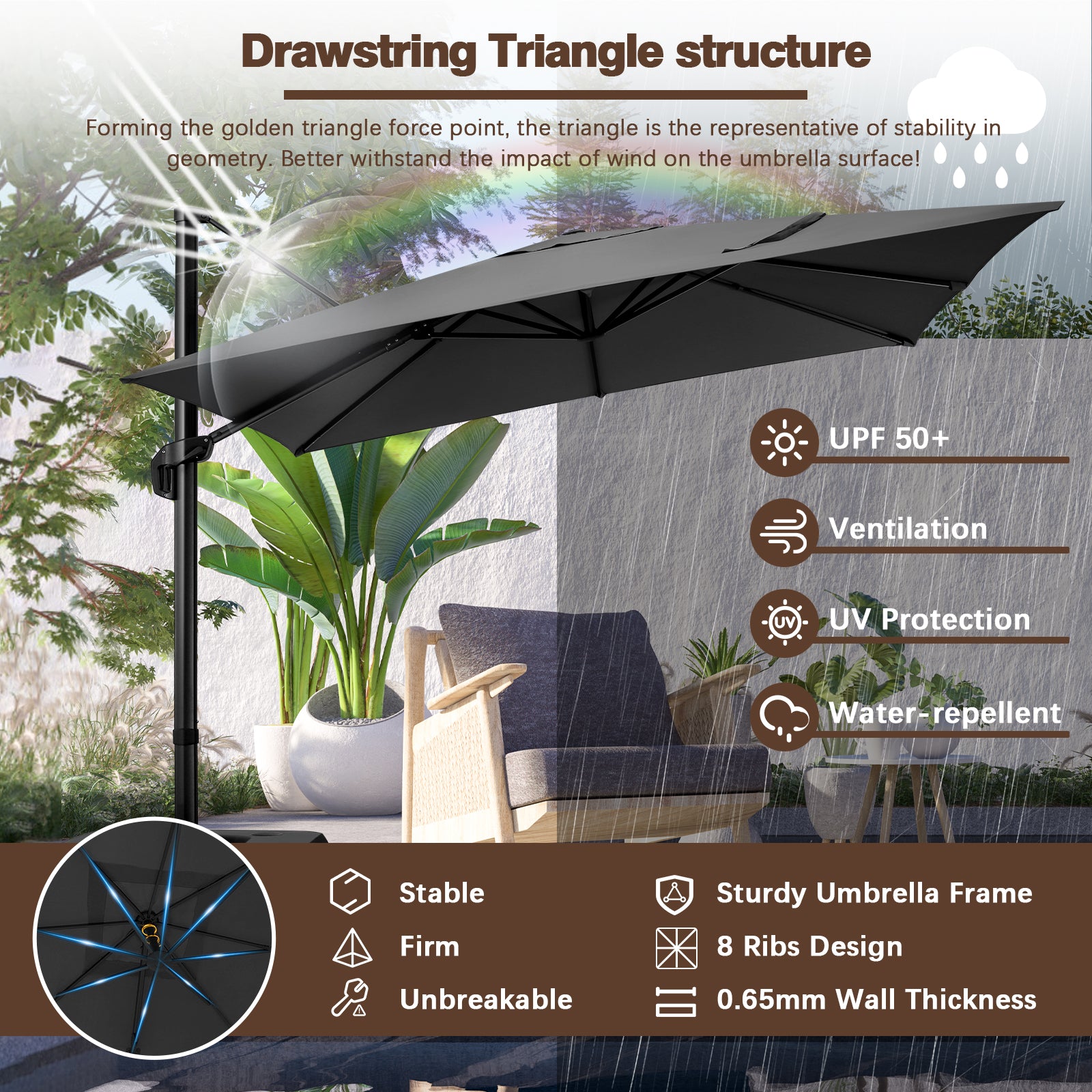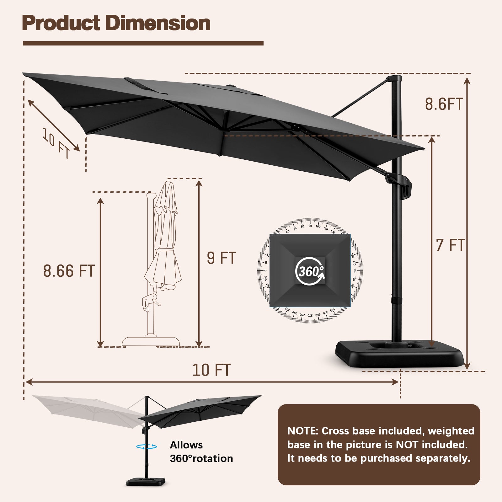 HOTEEL 10ft Patio Umbrella Outdoor Square Large Cantilever Windproof Offset and Heavy Duty Sun Umbrella for Garden Deck Pool,Gray