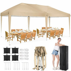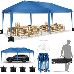 【Quick & Easy Set Up】: To set up the tent, you only need to unfold the canopy frame; drag canopy over the top; lift the top and lock the corner slider button; pull up the frame legs, adjust the height to your expected position and secure the sidewalls. Release the button and the pop up canopy can be folded down easily. When you are not using it, it is recommended to pack it up to ensure the long-term use of the canopy. The bag provided can hold a canopy tent for easy storage and carrying.