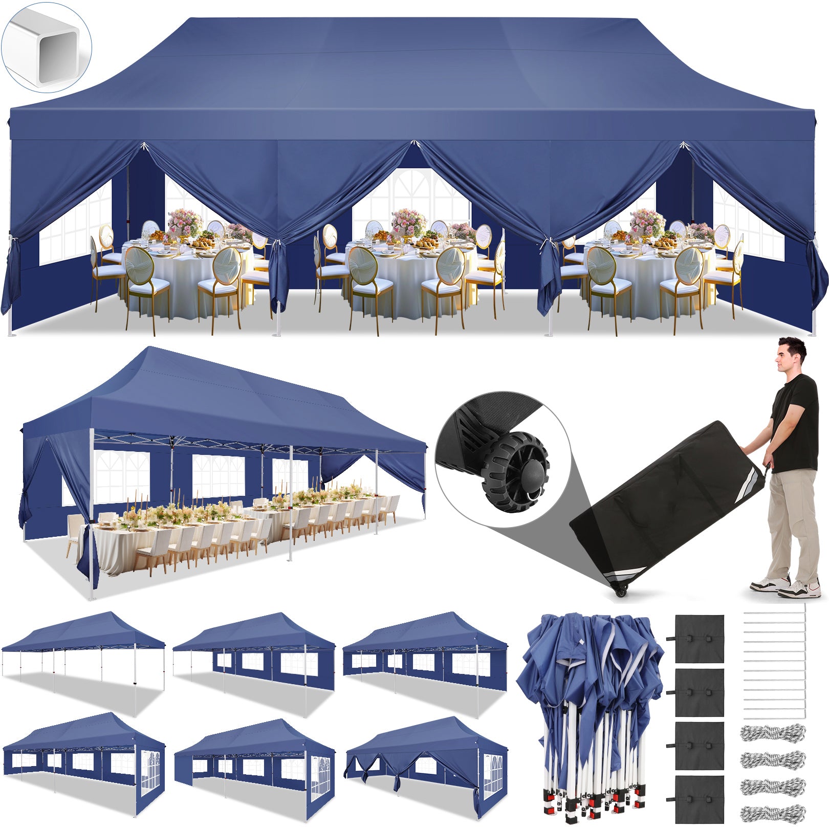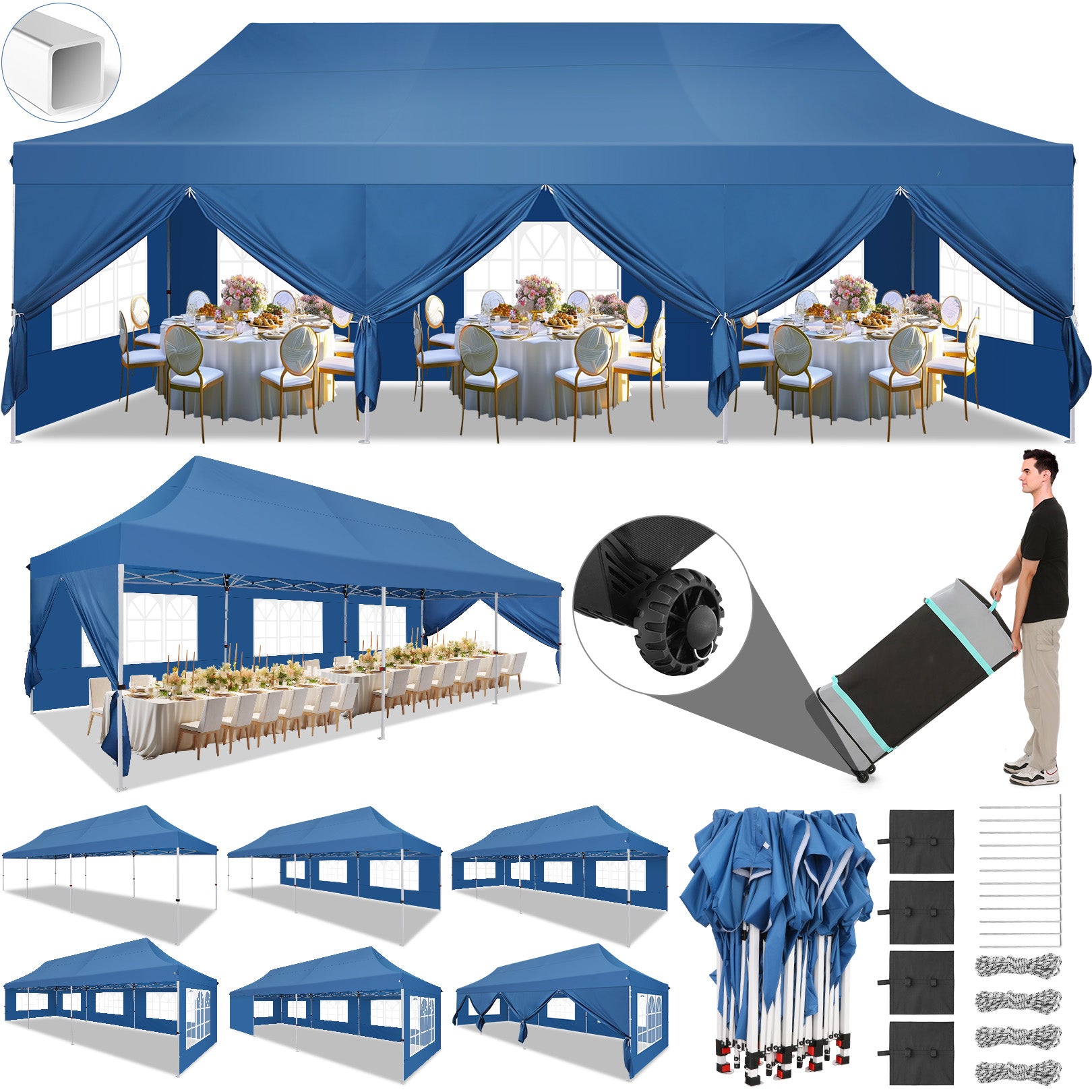 HOTEEL 10x30 pop up canopy provides 300 SQFT spacious covered space and 3 adjustable heights for your choice, it can easily accommodate 20-35 people, meet your different needs for holding large gatherings. Perfect for wedding, birthday party, market event and other larger events, also this canopy 10x30 can use as a carport.